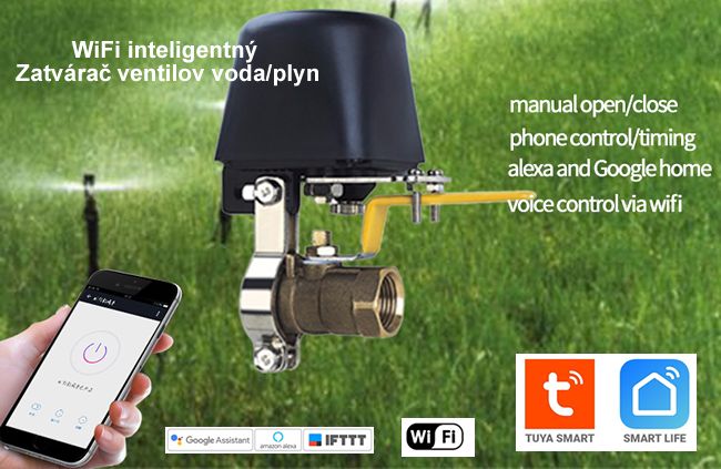 - vhodný v kombinácii so senzormi zaplavenia. V aplikácii Tuya je možné vytvoriť scénu, ktorá na základe informácií z iných zariadení (napr. snímačov) zavrie ventil.